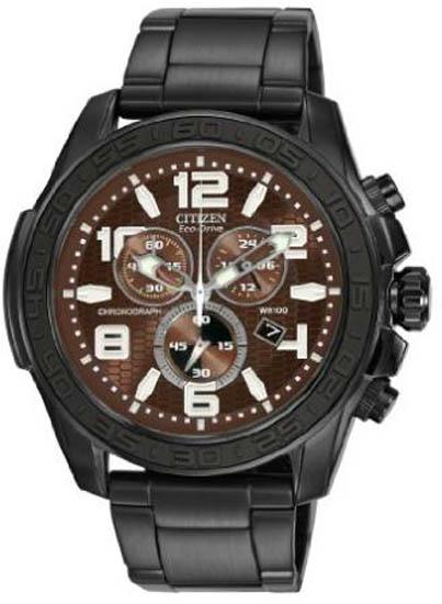 Men's Drive Collection Eco-Drive Chronograph Stainless Steel Case and Bracelet Brown Tone Dial